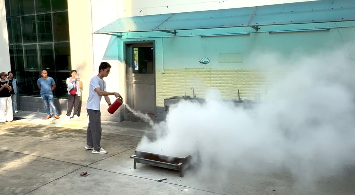 消防救援人员还现场演示了各种类型灭火器的规范使用流程,针对“提、拔、握、压”四步法进行细致拆解和反复强调。随后,在救援人员的全程指导与安全防护下,同学们实际体验灭火器操作的完整流程,在亲手扑救模拟火源的过程中,扎实掌握了这一关键应急技能。