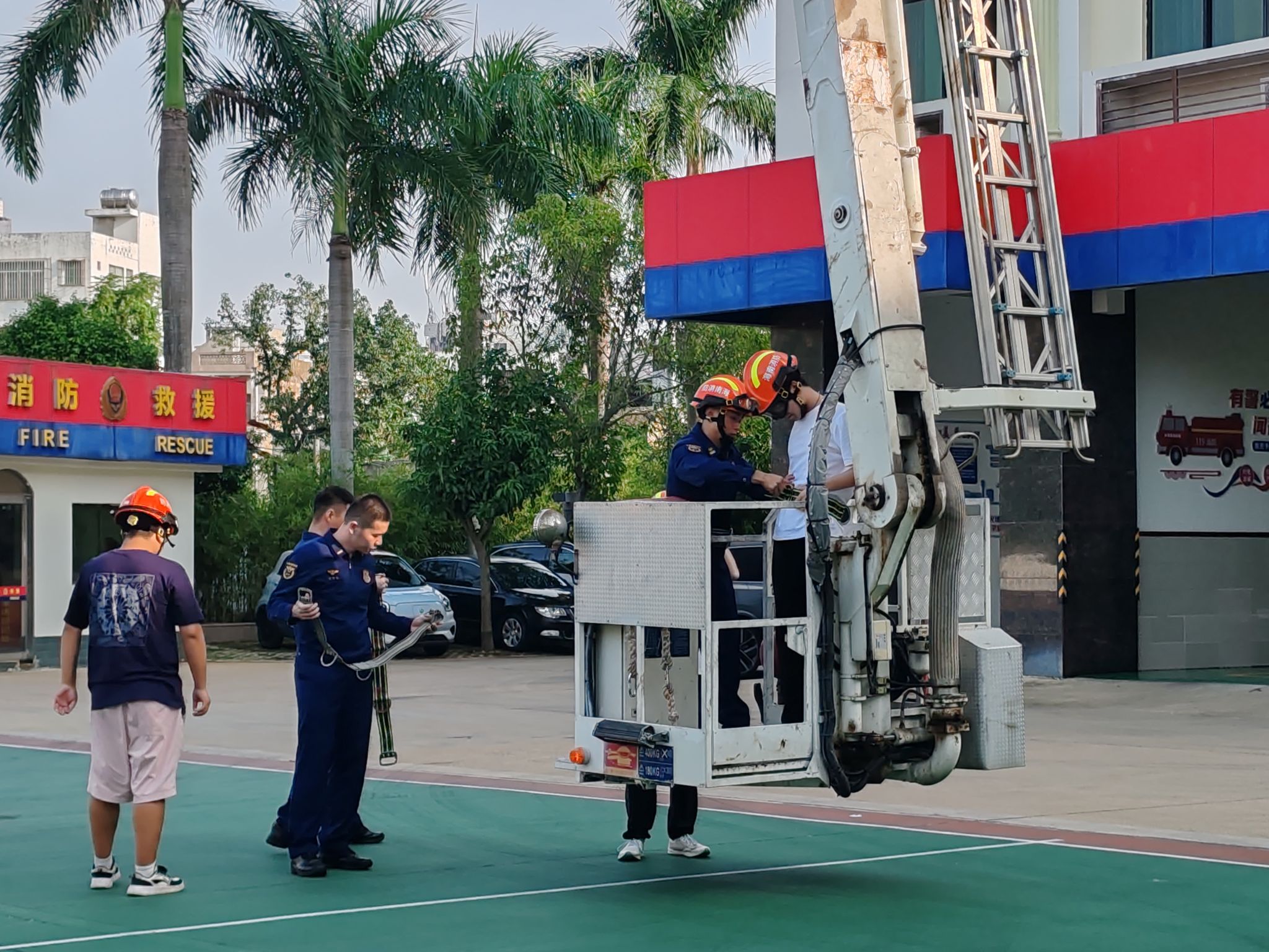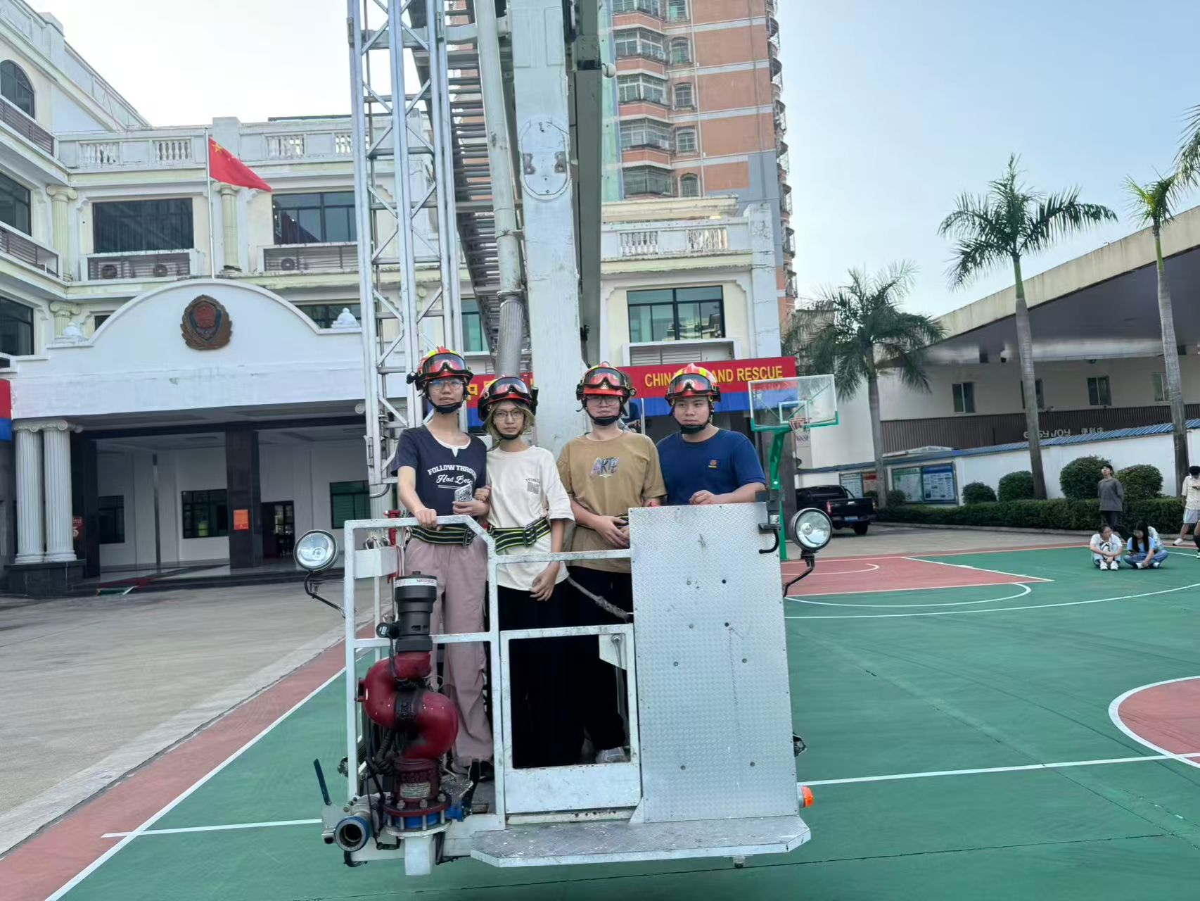 消防救援人员特别邀请同学们登上DG32型登高平台消防车,沉浸式体验消防救援一线工作场景。现场同学们热情高涨、踊跃参与,在亲身感受消防员日常作业流程与工作状态的过程中,直观领略了消防救援工作的专业与艰辛,进一步加深了对消防职业的认知与理解。